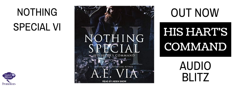 Buy Links: Audible US | Audible UK | Amazon US | Amazon UK Length: 8hrs 51mins Narrated By: Aiden Snow Nothing Special Series Book #1 - Nothing Special - Audible US | Audible UK | Amazon US | Amazon UK Book #2 - Embracing His Syn - Audible US | Audible UK … Continue reading Audio Blitz & Giveaway: His Hart’s Command by A.E. Via