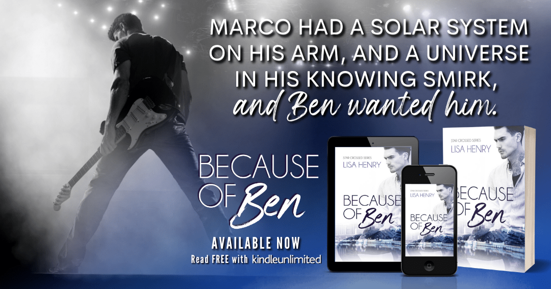 Release Blitz, Exclusive Excerpt & Giveaway: Because of Ben By Lisa Henry Star Crossed, Book 2 Marco Chase is the lead singer for Static, one of the world’s most famous and successful rock bands. Marco’s bad boy rock star image isn’t just one he’s cultivated for his fans—it’s Marco all over. Marco’s past is full … Continue reading Release Blitz, Exclusive Excerpt & Giveaway: Because of Ben by Lisa Henry