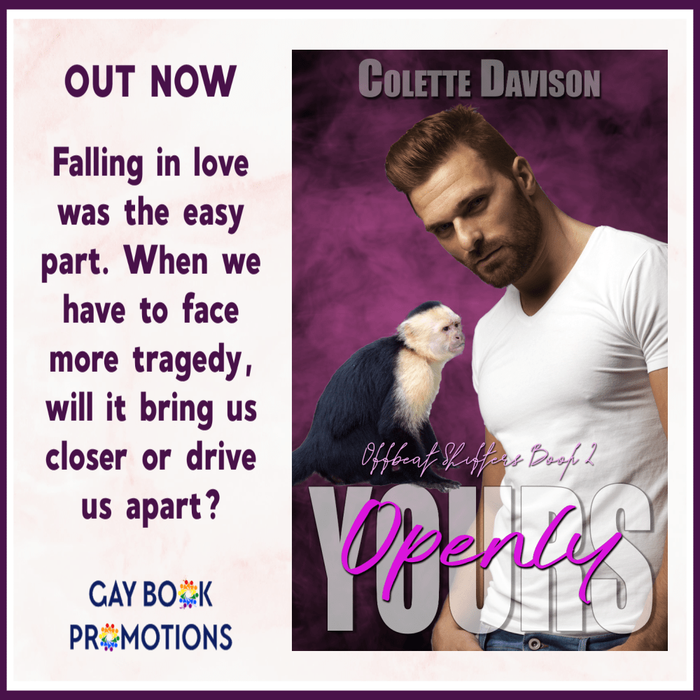RELEASE BLITZ Book Title: Openly Yours (Offbeat Shifters #2) Author: Colette Davison Publisher: Independently Published Cover Artist: Colette Davison Release Date: March 2, 2021 Genre: Supernatural M/M romance Trope/s: shifters, mpreg setting but there isn’t pregnancy or childbirth in the books, age-gap, pop-stars Themes: The price of fame, treatment of omegas in the pop industry … Continue reading Release Blitz & Excerpt: Openly Yours by Colette Davison