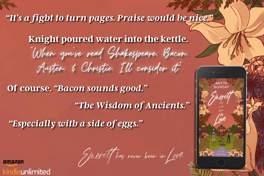 Blog Tour, Excerpt & Giveaway: Emerett Has Never Been In Love By Anyta Sunday Love, Austen (Book 1) A man who acts before he thinks, a man who thinks before he acts, and the ensuing mishaps on the path to the ultimate love match. ~ ~ ~ Emerett “Lake” Lakewood has a healthy ego and … Continue reading Blog Tour, Excerpt & Giveaway: Emerett Has Never Been In Love by Anyta Sunday