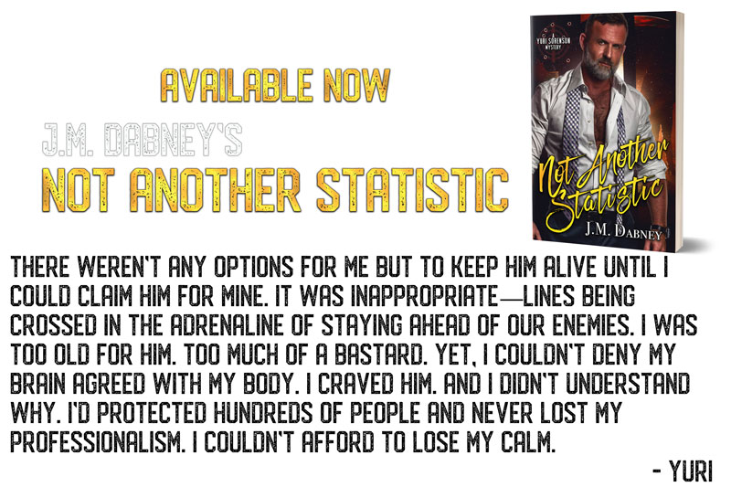 Not Another Statistic Yuri Sorenson Mysteries J.M. Dabney Genre - MM/Gay Fiction/Romance, Mystery/Suspense Release Date: 09.24.19 Cover Image - FuriousFotog (Golden Czermak) Cover Model - Kevin R. Davis Cover Art - J.M. Dabney Blurb Former Federal Agent Yuri Sorenson had left the bureau behind to become a private investigator. His ex-partner came to him asking … Continue reading Blog Tour: Not Another Statistic By J.M. Dabney