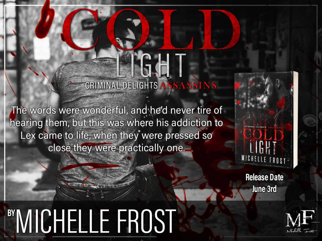 Cold Light: Assassins Criminal Delights Series, Book 14 Michelle Frost Dark M/M Romance, Assassins, Motorcycle Club Release Date: 06.03.19 Blurb Being an assassin wasn’t something Lexington Campbell ever envisioned for himself, but after spending eight years doing just that, he’s prepared to take his place at the table of his father’s motorcycle club, The Iron … Continue reading Release Blitz & Giveaway: Cold Light by Michelle Frost