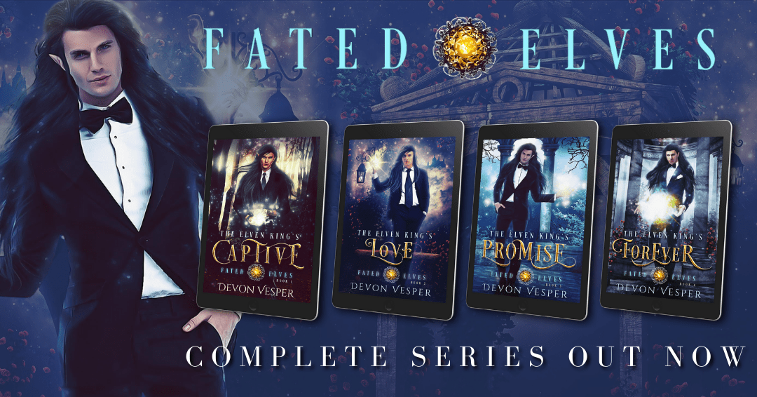 Magical Cover Reveal & Excerpt for the finale of Devon Vesper's Fated Elves Series: The Elven King's Forever By Devon Vesper With a Giveaway! Fated Elves, Book 4 Can two enemies work together to save the one person they both love? After all this time, Dustin’s transformation is nearly complete, and his happy ending is … Continue reading Magical Cover Reveal & Excerpt for the finale of Devon Vesper’s Fated Elves Series: The Elven King’s Forever by Devon Vesper; With a Giveaway!