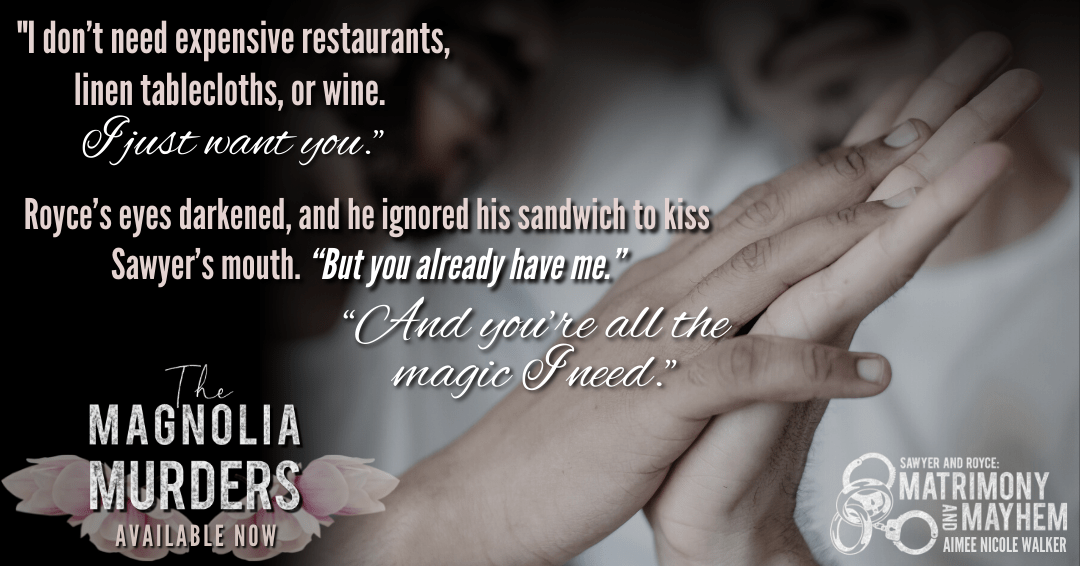 Cover Reveal & Giveaway: The Magnolia Murders By Aimee Nicole Walker Sawyer and Royce: Matrimony and Mayhem, Book 1 Releasing February 14th Everything old is new again in love and murder. Work together, live together, and play together is the name of the game for Royce Locke and Sawyer Key. But one of those things … Continue reading Cover Reveal & Giveaway: The Magnolia Murders by Aimee Nicole Walker